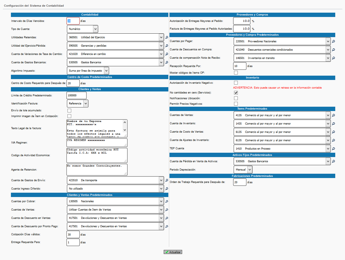 Configuración del Sistema de Contabilidad - Manual de referencia