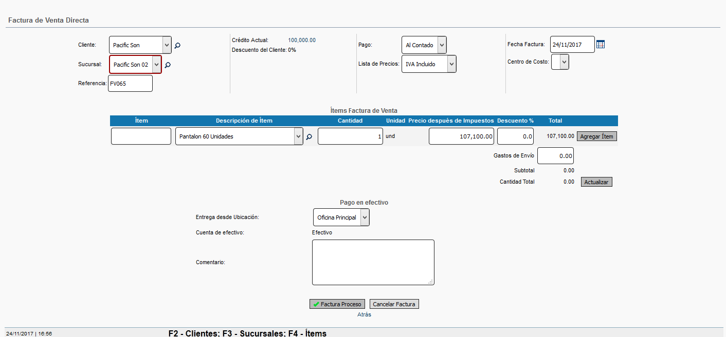 Una vez completado lo anterior, compruebe y vuelva a verificar la información que ha introducido, ya que no puede realizar cambios en las facturas de ventas directas después de generarlas en el sistema