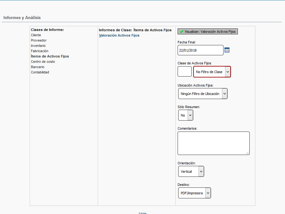 Informes de Clase: Ítems de Activos Fijos